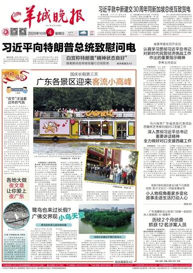 1957年10月1日创刊 2020年10月4日 星期日 庚子年八月十八 33℃ 24℃ 报料热线:(020)114转羊城晚报报料、(020)877