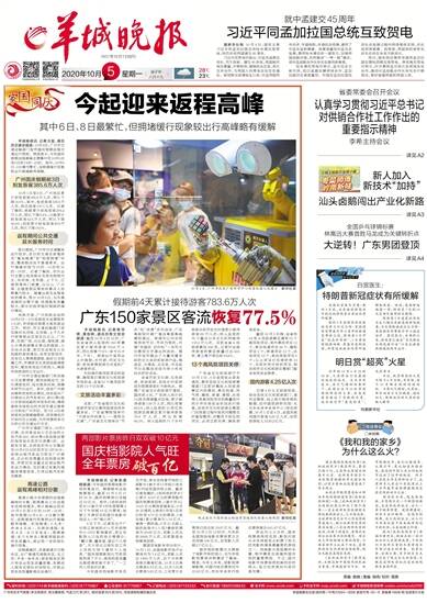 1957年10月1日创刊 2020年10月5日 星期一 庚子年八月十九 28℃ 23℃ 报料热线:(020)114转羊城晚报报料、(020)8