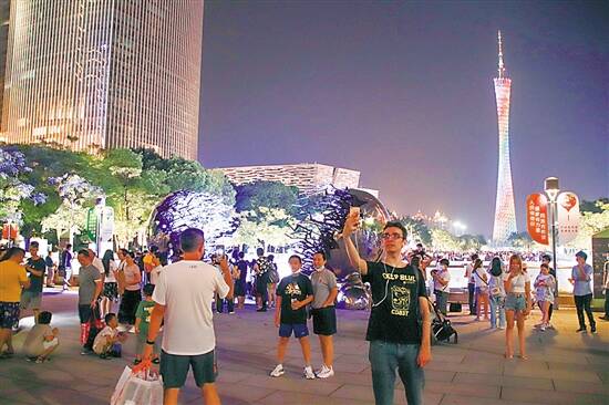 文/图 羊城晚报记者 徐炜伦 汪曼 实习生 金瑜 今年十一假期,广州的“夜经济”比往年更热闹一些。部分商场客流量创出新高,网红打卡点大排长龙。“夜经济”随着广州地标的伫立,呈现出新的生机和活力。 部分商场营业延时 假期创出客流新高 作为消费的主要场所,广州各大商场在十一期间迎来客流高峰。羊城晚报记者从广百股份获悉,1日,广百股份销售超4300万元,同比大幅增长。广百股份方面表示,“在步行街游客倍增的促进下,广百百货北京路店客流犹如回到往年春节般,晚上9时后,店内外依然聚集较多客流,新大新百货北京路店1日当天销售也同比上升122%”。 记者从万达广场了解到,1日,广州番禺万达广场的客流量和销售额都实现了同比提升。此外,万达广场还趁着假期开张新店,广州南岗万达广场在9月30日开业后的三天内,总客流达45万人次,销售总额为4171万元。 在假期期间,富力海珠城icon将营业时间延迟至23时30分。富力海珠城icon相关负责人向记者表示,在国庆期间整体客流环比平时有大幅上涨,夜间消费客流更大,其中餐饮及电影尤为明显。2日当天,更是创客流新高。 走访“网红”打卡点 部分店铺“排长龙” 羊城晚报记者假期期间走访发现,各大网红打卡点人头攒动,疫情的有效控制带来了广州在经济复苏下的消费盛况。广州超级文和友自开店以来,成为新晋网红打卡点,近日,有网友晒出拿号排队超过2000桌。5日下午,记者通过手机取号,显示有近800桌正在排队,晚上9时许,记者到现场取号时,仍有400余桌正在等待。 另一网红地标——珠江琶醍啤酒文化创意艺术区,在十一期间同样迎来了不少游客。记者夜间走访发现,除了酒吧,餐厅也是消费较多的场所。 海珠区的珠影星光城里有较多的餐饮店和酒吧,记者注意到,有的餐饮店排起了“长龙”,一名游客表示:“看到广州游玩攻略推荐来这里,没想到这么多人。”