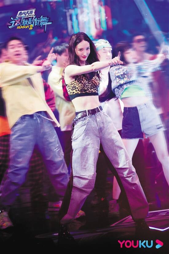 王霏霏(上)、金晨(下)在《这!就是街舞3》中秀舞技 |