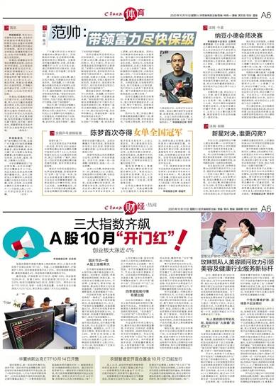 体育 2020年10月10日/星期六/ 体育编辑部主编/责编 钟闻一/ 美编 黄文倩/ 校对 温瀚
