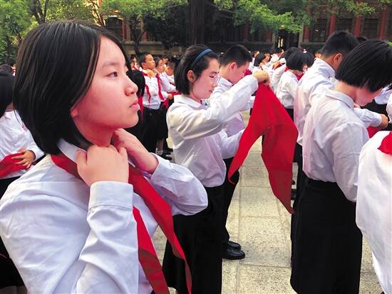 执信中学初一学生换上了大红领巾 |