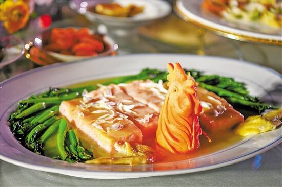 羊城晚报记者 黄宙辉 通讯员 广博宣 故宫有“故宫月饼”,敦煌有“莫高窟雪糕”,广东省博物馆有“粤光宝盒蛋糕”,而广州博物馆(以下简称“广博”)有“消失的名菜”!23日晚,镇海楼之夜——“留住乡愁”金秋诗会暨“消失的名菜”首发仪式在广州博物馆镇海楼举行。“江南百花鸡”“金银鸡蛋糕”“菠萝浴日”……活动中公布的一批复原粤式名菜,挖掘于民国时期粤菜酒家菜单中的经典菜品,能让市民重温上世纪广州市民生活和饮食文化。 现场 广府版的“满汉全席”再现 在“消失的名菜”首发仪式现场,筵席严格按照当年广府筵席制式而设计,可以说是广府版“满汉全席”。 “消失的名菜”菜品主创厨师徐锦辉表示,复原菜品中,“江南百花鸡”和“金银鸡蛋糕”两道菜最难复原。其中,“江南百花鸡”的制作难点在于鸡皮不能缩水,鸡皮和虾肉要融为一体;而“金银鸡蛋糕”的难点在于,要在下层烘好的蛋糕上再加蛋糕液去蒸,确保口感丰富。此外,点心“菠萝浴日”与明清羊城八景之一的“波萝浴日”同名,用牛奶、菠萝、咸蛋黄在碗内模拟了一个经典的广州自然美景,体现了广式点心精小雅致、兼具文化内涵的特点。 复原的民国时期老菜式令现场试食的嘉宾大饱眼福与口福。嘉宾梁先生表示,试食“消失的名菜”筵席,除了能尝试到食材的美味、体会粤菜师傅的“匠心”外,还了解了民国时期粤筵规制、程式,“这很有文化韵味,可以说是‘吃文化’。” 据了解,活动现场,广州博物馆联合中国大酒店餐饮团队,通过记录片形式展示了民国时期的粤式名菜和粤筵规制等。其中,“二京果”“四热荤”“六大碗”“七寸”“九寸”等粤筵规制、程式和文化意涵,为到场观众科普不少知识。 缘起 让博物馆的文物“活”起来 复原民国时期的粤式名菜,是基于什么初衷? “‘镇海楼之夜’是广博的品牌,这是一种文创形式,而‘消失的名菜’也是一种文创。”广州博物馆副馆长、副研究馆员朱晓秋表示,广博从今年征集的文物中挖掘出一批民国时期粤菜酒家的老菜单,菜单里的不少名菜早已淡出大众视线。 朱晓秋说,为了让文物真正“活”起来,广博与一街之隔的中国大酒店合作,将民国老菜式活化还原,希望能借此勾起老广州人的记忆,让更多新广州人认识老广州的饮食文化,让这些名菜重回到普通大众的餐桌上。 收集众多民国老菜单后,广博深入研究,从陆羽居、新华酒家、华南酒家等民国早期本地名酒家的菜单中精心挑选菜品,并集结粤式点心大师陈勋、中国烹饪学院院长黎永泰、中国粤菜烹饪大师梁灿然、十大中华名厨林壤明和点心女状元徐丽卿五位广州餐饮界老行尊等共同协作,广泛搜罗历史文献、反复试验研发,高度还原了一席精彩的“消失的名菜”粤菜盛宴。 对于复原的老菜式,中国烹饪学院院长黎永泰表示:“都说‘食在广州’,广州从清末开始就作为一个通商口岸。各处的食肆、饮食风格都汇聚在广州。”十大中华名厨林壤明认为:“粤菜与其他地方的菜品创新结合是应该的,但是传统一定不能丢掉。” 意义 打造岭南特色新文创 据悉,已完成研发的“消失的名菜”将于10月24日在中国大酒店推出。宴席菜单还结合本土传统非遗技艺广彩,设计了富有岭南特色的文创礼品“广彩碟菜单”。完整的一桌“消失的名菜”粤菜宴席价格为6180元。广博也将同步设置“消失的名菜”推广点,定期开展现场试吃活动。 活动当晚,广州博物馆还与中国大酒店签约合作框架协议,旨在利用博物馆的馆藏文物资源和研究力量,实现餐饮界技术力量和社会资源的优势互补,协力推进岭南传统文化和本土餐饮文化的深入挖掘和传承推广。 历史文化是城市的灵魂,保护和传承本土文化根脉、讲好广州故事,成为广州市博物馆界的责任所在。在“消失的名菜”首发仪式上,广州市文化广电旅游局相关负责人表示,本次活动对于守护与弘扬本土饮食文化和美食基因,擦亮“食在广州”这张享誉中外的城市品牌,为广州市民留住传统美食的乡愁记忆具有重要意义,同时也是广州建设文化强市、跨界融合创新、推动文旅产业出新出彩的一次有益探索和实践。
