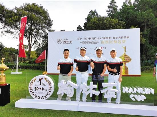 羊城晚报讯 记者梁劲松报道:10月23日,第十一届中国高校校友“翰林杯”高尔夫精英赛南赛区预选赛在阳江涛景高尔夫球会上演,来自广东、北京、上海、湖南、江苏、四川、福建、广西等地的26支高校球队的200余名选手参赛。 经过激烈争夺,18支球队晋级本届翰林杯总决赛,分别是暨南大学、中山大学、湖南大学、厦门大学、深圳大学、上海交通大学、四川大学、广西大学、西安电子科技大学、广东外语外贸大学、广东金融学院、广东工业大学、广东财经大学、广州美术学院、北京理工大学、华南师范大学、华南农业大学和重庆大学。