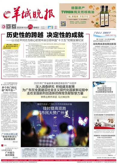 1957年10月1日创刊 2020年10月25日 星期日 庚子年 九月初九 责编/朱帆 孙焰 美编/丘淑斐 校对/潘丽玲 报料热线:(020)114