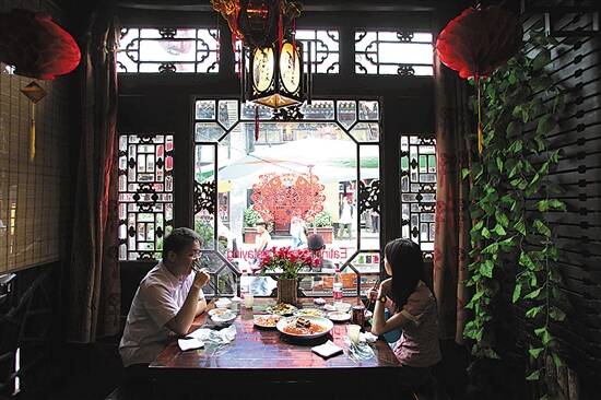 平遥一处饭店里,窗花、灯笼折射着古朴的中国味道 |