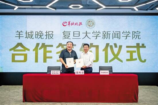 羊城晚报讯 记者陈亮、实习生杭莹报道:7日上午,羊城晚报与复旦大学新闻学院在羊城创意产业园签订深化合作协议。双方将共建新闻研究院,推动媒体融合向纵深发展,选择既有方向性又有指导性的课题开展合作研究,并联合发起、承办有影响力的新闻传播专业论坛。复旦大学新闻学院院长米博华,羊城晚报报业集团党委书记、羊城晚报社社长刘海陵共同签署了合作协议。 在复旦大学新闻学院部分在穗校友的共同见证下,双方完成深化合作协议签订。根据协议,复旦大学新闻学院将为羊城晚报的队伍素质建设、专业提升提供高水平师资支持。未来,双方将深化合作项目与合作机制,开展系列培训、举办系列讲座、组织实务指导、进行课题合作、策划论坛活动等。 “我获得的成绩离不开自己在新闻一线多年的锻炼,更离不开复旦新闻学院对我成长基因的培养和羊城晚报平台为我插上翅膀。”刚刚获得全国优秀新闻工作者最高奖——长江韬奋奖的刘海陵表示,复旦新闻学院是海内外声誉卓著的教育机构,是名记者、名编辑的摇篮,本次合作是培养全媒体人才的有益探索。通过邀请学院的专家教授来报社开班授课,选送业务骨干到复旦进修深造,为羊晚培养一大批“四力”俱全、政治过硬、本领高强、求实创新、能打胜仗的精兵强将。 米博华对刘海陵及羊城晚报获得的荣誉表示祝贺,对羊城晚报在媒体融合方面的新发展表示赞许。他指出,本次合作有助于推动复旦新闻学院的一线教学工作者了解业界最新情况,及时调整教学内容。 签约仪式结束后,复旦新闻学院一行参观了羊城创意产业园,并对园区的酷狗音乐、荔枝LIZHI等企业进行了调研。