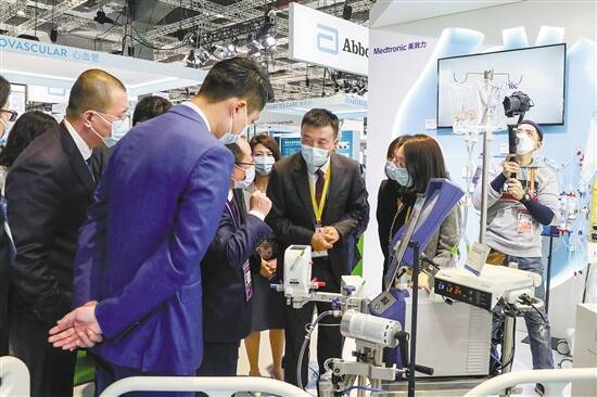 美敦力展区的Ecmo氧合器备受关注 羊城晚报记者 陶奕燃 摄 |