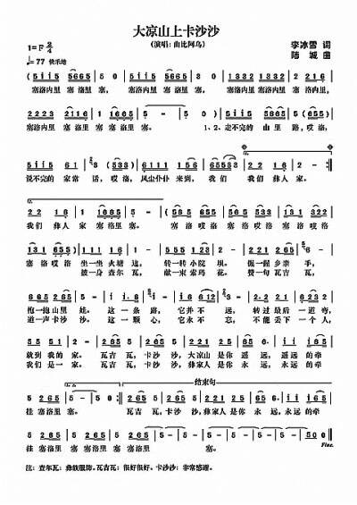 彝寨的男女老幼,身着民族盛装,排起长长的队伍,唱着歌,向他们最尊贵的客人问好,热情地喊着:“习总书记卡沙沙(谢谢)!”人群中,习近平总书记身披彝族传统服饰查尔瓦,同乡亲们一一握手。 这一幕,发生在2018年2月11日。这一天是腊月二十六,春节临近。习近平总书记驱车两个多小时,从西昌市赶往大凉山深处的昭觉县三岔河乡三河村、解放乡火普村,考察脱贫攻坚工作。 在万家团聚、共度春节之际,习近平总书记还牵挂着凉山的彝族同胞。此时的李冰雪虽然身处大巴山,但感同身受,看着电视上的画面,脑海里迅速冒出了《大凉山上卡沙沙》的歌曲题目。他有感而发,立刻写下了“走不完的山里路,说不完的家常话,风尘仆仆来到我们彝人家”。习近平总书记与彝族人民在一起的温暖画面,迅速转化为带着温度的歌词——“坐一坐火塘边,转一转小院坝,握一握乡亲手,抱一抱山里娃”。彝族同胞幸福地唱着歌,跳着舞,“共产党瓦吉瓦(很好)”,“习总书记卡沙沙”,欢乐祥和的画面转换成四句齐整的歌词——“披一身查尔瓦,献一束索玛花,赞一句瓦吉瓦,道一声卡沙沙。” 李冰雪说,“这一条路,它并不远,转过最后一道弯,就到我的家”,正是脱贫攻坚最后一公里的真实写照。“这一颗心,它永不忘,不能丢下一个人,我们是一家”表达了党中央脱贫攻坚不落下一个贫困群众的庄严承诺,也体现了全国各族人民奔小康路上亲如一家的深厚感情。 《大凉山上卡沙沙》深深打动了从四川走出来的亚洲爱乐乐团作曲家陆城。他为歌曲注入了极具彝族韵味的旋律,歌曲歌词朗朗上口,曲调欢快流畅,易于传唱。而演唱者曲比阿乌,正是从大凉山走出来的彝族歌唱家,太阳部落组合大多都是彝族歌手,经过他们的共同演绎,歌曲深受大家喜欢。2018年,《大凉山上卡沙沙》登上了央视音乐频道“唱支山歌给党听——纪念中国共产党成立97周年主题歌会”,并迅速传唱开来。 如今,大凉山彝族的贫困户正在一边唱着《大凉山上卡沙沙》,一边进行“百米冲刺”,跑完脱贫最后一程。 (摘自《光明日报》,文/郭超)