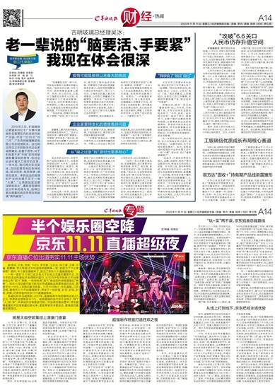 2020年11月11日/ 星期三/ 经济编辑部主编 / 责编 李卉/ 美编 陈炜 / 校对 李红雨 A14