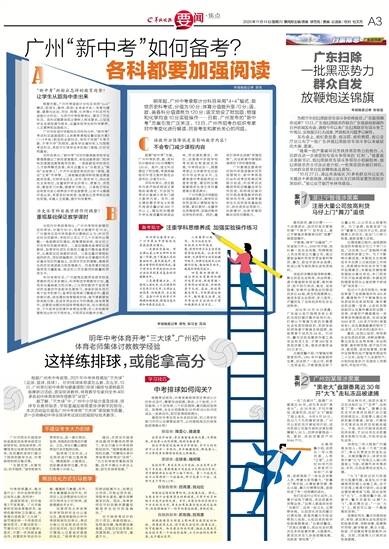 羊城晚报记者 蒋隽 实习生 高焓 根据广州市中考政策,2021年中考体育增加“三大球”(足球、篮球、排球)。 针对排球体育课怎么教、怎么学,13日,广州举行初中体育与健康课程(排球)编排与课例展示观摩研讨活动,资深排球教师、体育教学专家向全市400多名初中体育老师传授教学“诀窍”。 据了解,“三大球”中,广州中小学较少普及排球,排球专业教师缺乏,学校普遍反映需要排球教学的指导。本次活动旨在提高广州中考体育“三大球”课堂教学质量,进一步明确初中毕业排球考试项目的规则与技术教学。 不建议考生大力扣球 广州市西关外国语学校是国家级体育传统项目排球学校,该校徐学彬、何穗鸣两位体育老师现场教学,向观摩的老师们展示了排球的教学方法、中考排球的特点难点等。 “左脚在前,右脚在后,双手抛球。”徐学彬首先带领学生,逐一展示移动、发球、传垫和扣球等动作要点。之后,学生们戴上辅助带进行多次抛球训练。 抛球练习完毕后,4名同学进行接力垫球练习。精准垫球、小跑换位、找到最佳垫球位置,学生们练得十分投入。 随后,在西关外国语学校教师何穗鸣的带领下,学生们演示中考排球规定动作。“抛球距离是扣球的关键。”何穗鸣分享中考体育排球考试“诀窍”,“大力扣球虽然看起来很酷,但并不建议大家这么做,因为失误率很高。” 用游戏化方式引导教学 中考排球重点、难点是什么?初中生排球项目应该怎么教、如何学? 按国家规定,初中每周3节体育课。广州市教育研究院体育教研员、省特级教师钟卫东建议,体育课内容首选“三大球”,每节课安排一个球类项目教学即可,不要试图在一节课内对三个项目教学;其次,不要一次讲授全套动作,而要把所有动作分解,慢慢练习掌握;另外,学生掌握基本动作后,利用双人互动等游戏化的方式引导学生们打排球,逐渐提高技术水平。 华南师范大学体育科学学院研究生办公室主任、教授李毅钧分析中考排球细则后表示,考试分数以完成规定动作的总时间评判,但日常教学不要陷入过度追求速度的误区,“排球考试中实际移动距离不大,如果过分求快,可能出现失误,导致学生紧张,最终浪费更多时间。因此,体育老师在平时的教学要重视锻炼学生动作的准确性。” 对于排球考试中的四个项目,李毅钧指出,发球是关键,垫球要注意高度,自抛自扣没有落点范围限制,过网即可,难度不大。 学习技巧 中考排球如何闯关? 根据考试规则,中考体育排球项目考试以计时形式进行,需要完成起跑、移动、2个发球、3个自垫球、2个自传球、1个扣自抛球,最后跑回发球区。如果男、女生分别能够在23秒和25.5秒内完成这一连串动作,即可获得排球满分。 离明年中考还有半年多的时间,初三同学在练习中可以注意哪些细节,从而缩短闯关时间争取获得高分呢? 移动关:降重心、提速度 在考试开始前,考生要留意底线位置,不得踩线,并把重心放到前腿,做好准备姿势。 到达中线前迅速转为并步移动,步子大的同学可以并步一步到位,用手触摸到线,降低重心,不必等到身体都移动到线上再触线。 发球关:击球准、缩间隔 发球环节,男生采用上手发球、女生采用上手或下手发球,需要留意不同发球方式的站位区别,用手腕根部击打球中心偏下部位。第一个球发完后不必等待前一个球落地,即可发第二个球。这样可至少节约1.2秒。 自垫自传关:控高度、找站位 传垫球过高则浪费时间,过低属无效。因此,自垫自传十分看重考生的熟练度,只有平时多加练习才能不出现失误。另外,自垫自传的区域为9平方米的正方形,考生如果能靠近进攻线完成动作,则能够缩短下一环节的拿球距离,争取时间。 自抛自扣关:抓助跑、控高度 助跑距离很大程度上影响考生能否成功扣球。距离球网太远,球可能无法过网;距离太近,则可能触网。和自垫自传关同理,抛球太高来完成击球不是一个合适的选择,大力扣球的失误率高,也不建议采用。
