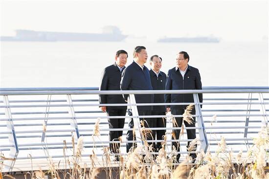 11月12日至13日,习近平在江苏考察。这是12日下午,习近平在南通市五山地区滨江片区,沿江边步行察看滨江生态环境 新华社发 |