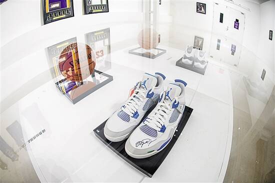 “传奇·传承—— NBA球星亲签展”上的迈克尔·乔丹4代球鞋 |
