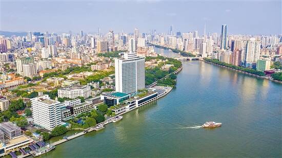 沙面,白天鹅宾馆傍江而立 羊城晚报记者 梁喻 林桂炎 摄 |