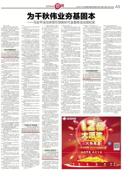 法者,治之端也。 推进全面依法治国,是国家治理的一场深刻变革,必须以科学理论为指导,从理论上回答为什么要全面依法治国、怎样全面依法治国这个重大时代课题。 习近平法治思想,在新时代波澜壮阔的