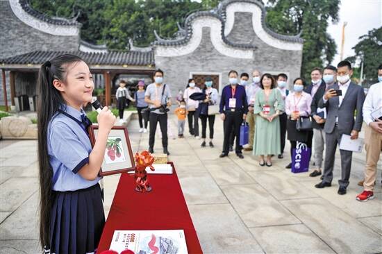 嘉宾们来到海珠国家湿地公园,小学生展示广绣、醒狮等广州文化 羊城晚报记者 梁喻 摄