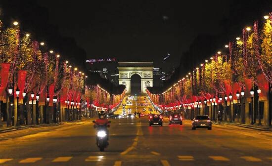 22日,巴黎香榭丽舍大街迎来一年一度的点灯仪式,鉴于新冠肺炎疫情以及“封城”措施,点灯仪式没有观众参加 新华社发 |
