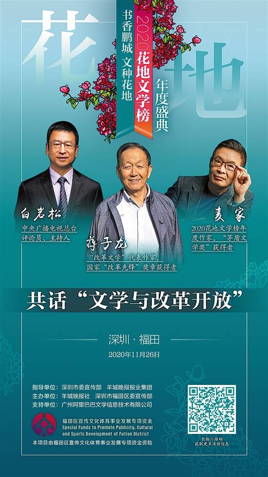 2020花地文学榜年度盛典26日在深圳举行,蒋子龙、麦家、白岩松对谈“文学与改革开放” 风起南粤 花开鹏城 详见A11