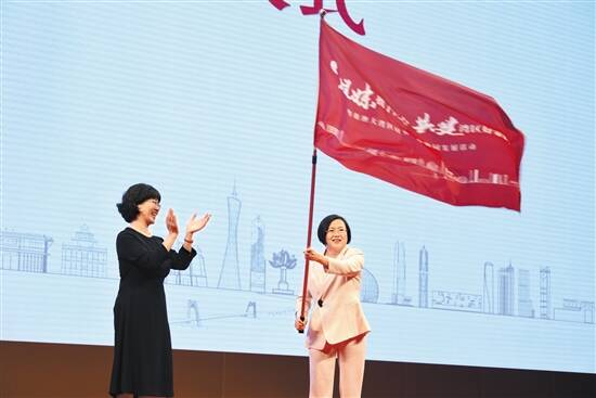 今天上午,在启动仪式现场,广州市妇联、深圳市妇联负责人进行活动旗帜交接,明年的活动将在深圳举办 羊城晚报记者 宋金峪 实习生 闵岚欣 摄 |