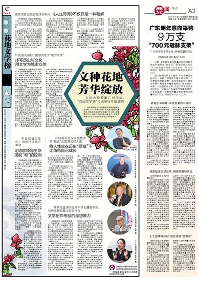 羊城晚报讯 记者郭起报道:“一个瞬间或是一个闪念,有可能是一个核心细节,就能催生一部短篇小说。我称之为‘切片与火花式的小说’。”25日下午,由羊城晚报社与福田区委宣传部联合主办的2020“花
