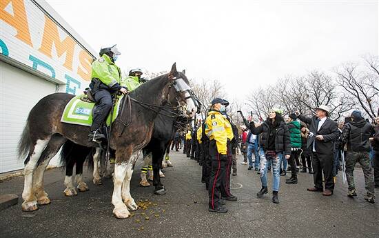 11月26日,在加拿大多伦多,警察在一家违反“封城”禁令的餐馆外执勤。 截至当日下午,加拿大累计新冠确诊病例升至351133例,累计死亡11776例。