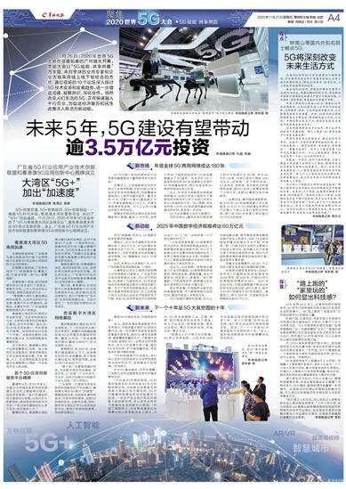 羊城晚报记者 陈泽云 黄婷 5G+智慧交通,5G+智慧港口、5G+智能制造……随着5G时代来临,粤港澳大湾区蓄势待发,开启了“5G+”的加速度。11月26日,2020年世界5G大会
