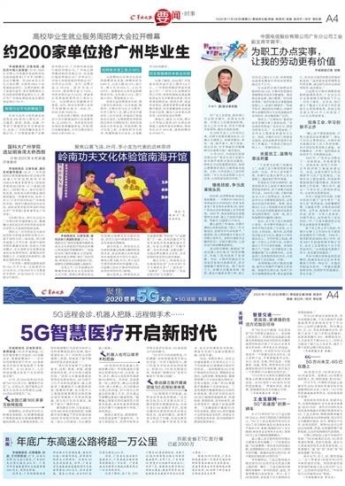 羊城晚报讯 记者陈泽云、黄婷报道:5G红外线测温、AI防护服穿脱行为监控、5G远程会诊、智能影像阅片……在今年的疫情防控工作中,5G等新技术在医疗领域发挥了支撑的作用。在5G加持下,人们的就