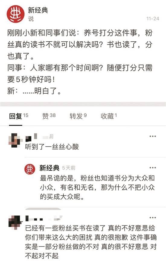 羊城晚报记者 胡广欣 近日,图书编辑“贝塔减”在豆瓣发布长文,称其编辑的新书《记忆记忆》上架不久便出现大量“注水”短评,怀疑这些都来自明星粉丝的“养号”操作——通过给其他书影音作品打分、评论,提升新号的活跃度,方便日后为明星的作品打分。 为何近来豆瓣的书影音条目下,突然出现大量的无意义评论?该长文为一批普通用户的迷惑答了疑。不久,豆瓣读书回应称将遏制“养号”行为。同时,相关明星的粉丝后援会也公开发声,对部分粉丝的不良行为道歉并作出正确引导。 粉丝“养号”到底伤害了谁,羊城晚报记者也就相关问题采访了社会学学者。对方认为,这种以“数据至上主义”为基础的追星模式对粉丝而言,其实伤人又伤己。 梳理 一次被迅速扑灭的“养号”行动 图书编辑“贝塔减”所编辑的新书《记忆记忆》是今年11月发行的当代俄语诗人玛丽亚·斯捷潘诺娃的长篇小说。该书内容相对冷门,但因曾出现在豆瓣手机页面“新书推荐”的第一位,便意外成为饭圈粉丝的“养号基地”。“贝塔减”在长文中称,该书在两天内“收获”近200条短评,有些是其他用户发布的高赞短评或书评的复制粘贴,有些则是“好看的好看的好看的好看的好看的”之类的无意义语句。 不止《记忆记忆》,图书出品方“新经典”近日在豆瓣广播发声,称其10月出版的新版雷蒙德·卡佛作品《当我们谈论爱情时我们在谈论什么》,同样“突然涌入大量0粉小号的注水短评”。豆瓣用户“燕仰”则整理出豆列《被饭圈用来养号的那些作品》,当中既包括《格林童话全集》《红楼梦》《三国演义》等世界名著,也有《凡人之心》《伟大的孤独》等新书。 有用户分析,在11月下旬突然出现的大规模“养号”现象,主要源自某“顶流”明星的部分粉丝在微博发起的“养号”行动。该明星在2020年末和2021年将有三部电影上映,粉丝提前“养号”,为的是待电影上映后能给偶像的作品打分。 经过近两天的发酵,豆瓣读书在11月24日发布公告,表示将严厉打击任何“养号”行为,异常用户将被永久标记,未来的评分评论也将被视作无效内容处理。该明星粉丝后援会微博也表态,为部分粉丝的不当行为道歉,“我们会集体自省并呼吁所有粉丝自觉维持一个良好的豆瓣环境,尊重每一个作品、每一位创作者”。 分析 来自饭圈的“常规操作” “养号”现象为何在豆瓣大量出现?或是因为豆瓣是当下最受大众认可的书影音评分网站之一,其评分被认为能较真实地反映作品质量。据悉,为了维持其评分的公信力,豆瓣曾设立一套“反水军机制”,根据用户的注册时长、活跃程度等指数计算账号的“权重”——只有账号达到一定“权重”,其打分才有效。因此,粉丝“养号”本质上是话语权的争夺,希望能通过“养号”来更多地影响自家偶像作品的豆瓣评分。 事实上,“养号”跟“超话打榜”“反黑”“控评”等行为一样,是流量明星粉丝的“常规操作”。在此次事件发生前,微博等社交平台上轻松就能搜出各种“豆瓣养号攻略”,其中的“通行规则”包括:在偶像作品上映或播出前两三个月开始“养号”、头像和签名不能暴露粉丝身份、不能在作品上映或播出前评分、多关注其他用户、每天都对书影音作品打分和评论……有些粉丝团体甚至会“规定”每天必须评论的作品数量及评分区间。 此外,“养号”也催生出一条灰色产业链。大部分粉丝都有不止一个豆瓣账号,除了自己“养”之外,还可以买卖。据《证券日报》报道,在专门从事豆瓣账号买卖的网站上,一个2015年至2016年间注册的豆瓣账号售价约80元。 挤压他人的话语空间 目前,微博超话是追星的“主战场”。超话鼓励用户通过完成任务获得奖励,其奖励可用于给超话打榜、兑换虚拟礼物等。获得积分的方式包括登录、连续访问、签到、评论和转发。不少人认为,正是类似规则塑造了粉丝群体“重数量轻质量”的行为模式。 粉丝将这套行为模式复制到豆瓣,便成了“养号”。“养号”所带来的大量“注水”内容,直接危及豆瓣书影音的两个重要功能,既影响客观公平的评分,也挤压了普通用户的话语空间,破坏了豆瓣的社区生态,让那些希望分享和交流的人难以找到同好。正如豆瓣用户“paradiso”所说:“我根本不在乎我打的星是不是被计入权重。我写了公开短评,能让所有人都看见,这才是用豆瓣的初衷。” 在豆瓣读书和明星粉丝后援会表态后,此次11月大规模“养号”事件看似暂告一段落。但被推至风口浪尖的《记忆记忆》却成为粉丝、“黑子”与非粉丝之间的“战场”。这本书在11月25日以后的短评,仍然充斥着大量与图书内容无关的评价:有人打了五星,留下一句“抱歉”;有人呼喊“别让饭圈文化祸害严肃文学”;也有一些ID中包含其他流量明星名字的用户给该书打出一至三星的低分。 观点 “养号”体现了明星之间的“内卷化” 此次“豆瓣养号”事件,只是近年各种“粉丝迷惑行为”的冰山一角。2018年某明星的粉丝组团刷iTunes北美区榜单,把他的新歌直接顶上第一位,引发诸多争议;今年年初,另一位“顶流”明星的粉丝举报某同人作品,引发一系列风波,造成该明星遭遇路人的集体抵制;今年11月,某男团粉丝用某明星的演唱会来进行抢票“练手”,导致该明星的自家粉丝买不到票……为何粉丝与大众之间的矛盾愈演愈烈?羊
