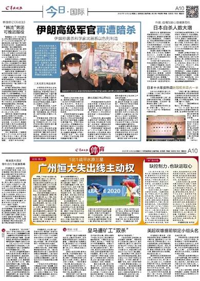 2020年12月2日/星期三/ 体育编辑部主编/责编 赵亮晨 / 美编 伍岩龙/ 校对 潘丽玲