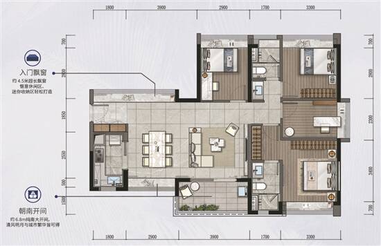 珠江万科城 获奖户型:童梦三房两厅 约77平方米 获奖理由:东莞万科首个创新型三房,77平方米能做三房,且布局合理,动静分离,最关键是首付只要40万元起。该户型户户朝南,明厨明卫,而且这次厨房还特别附赠了洗碗机。3.4米开间的客饭厅,提供了充足的活动空间。270度双飘窗设计,可作为私人小天地,同时又增加了房间内采光。 光大ONE+ 获奖户型:117平方米全能四房 获奖理由:117平方米全能四房,入门长约4.5米的大飘窗,空间灵动,既可打造成休闲区,又可变身收纳空间,还可营造迷你花园,给居家增添绿意。创新性横厅设计,朝南开间达到了约6.8米,整个户型的面宽达到了13.6米,极大地增加了采光和通风效果。阳台开间约3.9米,面积约7平方米,比一般的房间还大。同样拥有双卫生间配置,干湿分离,明卫通风。奢阔四房,主人房、儿童房、老人房、多功能房,陪孩子长大、陪父母变老,任何珍贵的时光都不容错过。 莞民投·众筑悦璟台 获奖户型:璞悦三房两厅 约98平方米 获奖理由:该户型属于东莞首创三房舒适户型,三房两厅两卫设计,南北通透、明厨明卫,是东莞楼市上少有的98平方米也能做到南北通透的优质产品。 其大面宽横厅格局,整个客餐厅有约6.1米乘4.3米宽阔空间,雍容大气,揽怀家人欢聚时光,客厅连接宽景阳台,生态美景尽收眼底。而入户公共卫生间设计,干湿分离,私密性做到更好。卧室三个房间采用“L”形排布,功能分区明显,提高空间使用率。各个卧室飘窗设计,视野开阔,保证整体空间采光和通风,并且主卧套间设计,彰显主人尊贵感,优化生活品质。 海德·琥珀臺 获奖户型:A4四房两厅 约143平方米 获奖理由:该户型为东莞罕有的四房三卫改善型产品,南北通透、四开间朝南。4.4米超大开间客厅,身份的象征,承载家人相聚的美好时光;南北双阳台设计,北瞰黄旗,南揽园林,其中南向景观主阳台面宽6.5米,超凡气派,引领雍容品质生活。 厨房公卫独立成区,干湿分离,动静分区。阔绰双套房设计,长辈房兼顾家里老人需求,四代同堂共享天伦之乐。各个卧室配备飘窗设计,采光通风;主卧套房设计,配备衣帽间,享尊崇舒适生活,尽享大户风范。 丰泰湾区·风华世家 获奖户型:香漫三房两厅 约90平方米 获奖理由:该户型属于东莞实用性较高的三房户型,三房两厅两卫设计,南北通透,夏有凉风冬有阳,明厨明卫、双阳台,是东莞少有的90平方米也能做到两个卫生间的优质产品。餐厅客厅相连,整个客餐厅有约7.2米乘3.4米宽阔空间,雍容大气,客厅连接宽景阳台,3000亩白马湖尽收眼底。 厨房与餐厅相连,优雅随享生活美味,私密两卫,干湿分离,私密性做到更好。卧室三个房间采用“I”形排布,功能分区明显,空间使用率超高。各个卧室飘窗设计,视野开阔,阳光充足,推窗即赏好风光,豪华主卧,套间设计,空间开阔,奢华起居,彰显贵族气质。 华侨城·云麓台 获奖户型:臻山四房两厅 约120平方米 获奖理由:东莞罕见的两梯两户,电梯前室私享独立电梯,四房两厅两卫设计,纯板式南北通透,同时四面朝南,全景飘窗,南向客厅拥揽美景,是东莞少有的120平方米也能做到单梯入户四面朝南的通透优质产品。同时还拥有罕见7米阳台,奢阔雅致,拥揽多维景观。 入户公共卫生间设计,干湿分离,私密性做到更好。动静分离,长幼有序,布局合理让每位家庭成员都有自己的小天地。各个卧室飘窗设计,视野开阔,保证整体空间采光和通风,并且主卧套间设计,彰显主人尊贵感,优化生活品质。