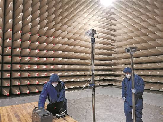 疫情期间,广电计量电磁兼容检测技术团队为防疫相关医疗设备开展电磁兼容试验 图/受访者提供 |