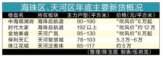 文/图 羊城晚报记者 陈玉霞 属于广州中心区楼市的“高光时刻”终于到来。12月,海珠、天河两区将有多个新盘陆续上市,大多以江景为主要卖点,定位高端,从羊城晚报记者目前掌握的情况看,这批新盘的“吹风价”最高已达12万元/平方米,近期海珠区楼市的风头大有盖过天河区楼市的迹象。 海珠新盘势头迅猛 江景新货移至珠江后航道 以往,中心区新货大多集中在荔湾区广钢新城;如今,海珠、天河、荔湾等区域的新盘分散而立。海珠楼市势头越来越猛:新品“吹风价”低则6万多元/平方米,高则达12万元/平方米,且各盘均称“预订情况理想”。 15年前,江景盘云集的海珠区滨江东(珠江前航道)成为广州公认的江景豪宅区。15年后,海珠区的江景项目已经聚集到珠江后航道:绿地越秀海玥、星汇海珠湾、时代大家、金融街融御、中海观澜府、珠光沥滘项目、天悦江湾等临江而立。其中,时代大家和中海观澜府为全新楼盘,珠光沥滘项目动作稍慢尚未亮相,天悦江湾为在售项目,其余为尾盘状态。 珠江后航道板块地价不菲,从2013年至今,该片区的地价从34590元/平方米升至55437元/平方米。目前,地价“5万字头”的地块已建成时代大家亮相,单位面积均超过192平方米,三梯三户设计,售楼部“吹风价”约12万元/平方米。距离时代大家约两公里的中海观澜府,产品相对丰富,单位面积90-190平方米不等,已开始接受认筹登记,“吹风价”为6万-7万元/平方米。至于在售的天悦江湾,产品为复式设计,售价约8万元/平方米。 天河东部竞争激烈 新盘“吹风”单价超6万元 四季度,天河区新货主要集中在东部,主力在售楼盘为珠江花城、保利天汇,随着全新项目金地峯睿亮相,天河东部楼盘之间的竞争更趋激烈。 从整体定位看,这些项目的产品还算“亲民”,各盘都有100平方米以下的紧凑三房乃至四房可选,若以5万元/平方米的价格来算,一套70平方米左右的两房单位总价不到400万元,对天河楼市而言,这样的入市门槛不算太高。当然,这些楼盘也有一些面向改善型需求的产品,金地峯睿、珠江花城均有110多平方米的“3+1”房。 年底推新货的几个项目,珠江花城报价相对较低,约5万元/平方米;金地峯睿现正处于开放临时售楼部阶段,现场“吹风价”为6万元/平方米起。