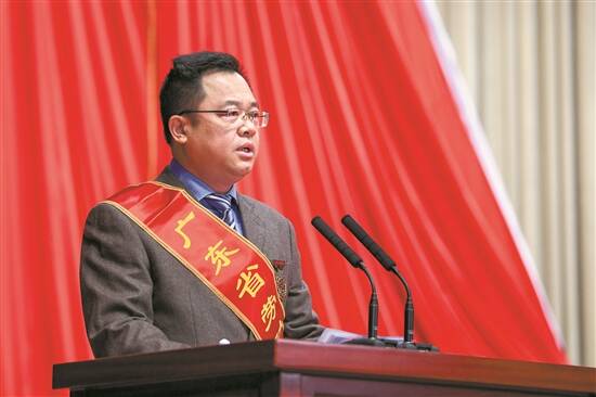 蒋文新作为广东省劳动模范代表在表彰大会上发言 |