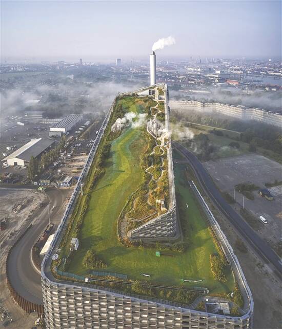 □建平 哥本哈根的Copenhill垃圾发电厂已作为一个公共景点对外开放一年,目前显然已成为当地一个网红打卡点。除了看发电厂的运作,这里还被设计成了一个大型娱乐休闲中心,包括一面号称“全世界最高”的户外攀岩墙和一个大型滑草场。 该场地周边的一些工业设施也开始发展新的旅游项目,开发出滑水场和卡丁车赛场等极限运动场所。 整体设计格局丰富 Copenhill是丹麦建筑公司BIG的一个成功项目。说它是一个垃圾发电厂,倒不如说是一幢“综合大楼”,它所具有的功能实在太丰富。 设计师将它设计成一个U型斜坡的造型。整个大楼的顶部被设计成一个约9000平方米的滑草场,包含有徒步走道和小型公园设施;在滑草坡道的出口处,设置了一个大型“酒吧”,可供市民和来访者休憩;大楼最长立面的一侧墙面,则装饰成了一面攀岩墙,有85米高,据说是目前“全世界最高”的人工攀岩墙;大楼内部仍有10层高的空间,里面除了发电厂,还有一个可用于学术工作坊、可持续会议的600平方米的公共活动空间。 滑草者可乘坐电梯前往楼顶,期间可以透过玻璃窗一睹发电厂内部24小时不间断的工作运行状况。他们也可以沿着约490米长的步道“上山”,边登顶边观赏发电厂周边的自然风景;而厂房内部的人们也可以透过玻璃窗,目睹攀岩墙上攀爬者的一举一动。 节约能源更为环保 这座综合大楼将成为哥本哈根的地标式建筑。有一个重要原因是它的环保功能,这有助于哥本哈根计划在2025年成为“世界上第一个碳中和环保城市”的发展目标。 这座新型垃圾焚烧发电厂,本身就配备了最新的垃圾处理和能源生产技术,以取代原先位于附近的一个存在有50年之久的老式垃圾处理厂。各种设备的精准架构,已打造出一个高效、环保的内部运作环境。熔炉、蒸汽和涡轮机每年能将44万吨垃圾废物转化为足够为15万户家庭提供电力和集中供热的清洁能源。 屋顶近1万平方米的绿化工程,还在一定程度上解决了这个85米高的“高地公园”的“微气候”问题。生物多样性的存在可以在吸收多余热量、去除空气微粒和最大程度地减少雨水径流的同时,也使内部人为打造的原始自然景观得到重现。 Copenhill的连续立面墙,分别由1.2米高、3.3米宽的铝砖单元块堆叠而成,其耐火度相当高,且能耐急冷、急热与碱性侵蚀。镶嵌在铝砖缝隙之间的玻璃窗户,足以使日光照射到厂房深处及内部行政工作区域。 总之,这座大楼已突破了传统发电厂的理念,创新了工业基地的设计理念,实现了经济、环保和社会需求的多方共赢。此种概念化的设计,值得推广。