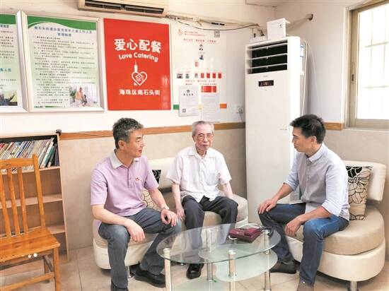 金础滨(右)和社区高龄党员谈心 |