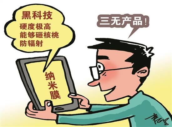 文/江德斌 图/春鸣 近日,一款“黑科技”纳米手机膜宣称具有硬度极高、能够砸核桃、防辐射等功能,引起了众多网友的质疑:“贴膜后根本感受不到膜的存在。”有业内人士甚至认为,“纳米膜”就是在收消费者的智商税。记者购买了两款某购物平台上热销度排名靠前的纳米膜,但整个商品找不到有关生产厂家的信息,属于不折不扣的三无产品。(12月17日北京青年报) 据商家宣称,“纳米膜”具有触控灵敏、防水防油、耐划耐磨、防辐射、抗蓝光、减少指纹、易清洁、缓解视觉疲劳、高效杀菌等功效,简直就是一个无所不能的手机膜,难免令人心动。不少消费者马上将心动转变成行动,花钱在网上购买。可这“纳米膜”就是一种药水,涂抹上去后,和没贴一个样,商家却说“纳米膜”就是看不见的——这不就是“皇帝的新装”! 有业内人士称,纳米膜主要成分与指甲油类似,效果几乎可忽略不计。 商家将类似指甲油成分的东西,包装成高科技的“纳米膜”,卖出高价赚取暴利,还用“皇帝的新装”式的说辞来给消费者“洗脑”,这已经涉嫌虚假宣传、商业欺诈了,监管部门应依法查处。
