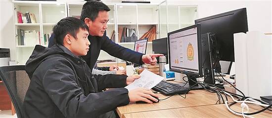 尧优生副教授(右)正在进行农产品LOGO设计 |