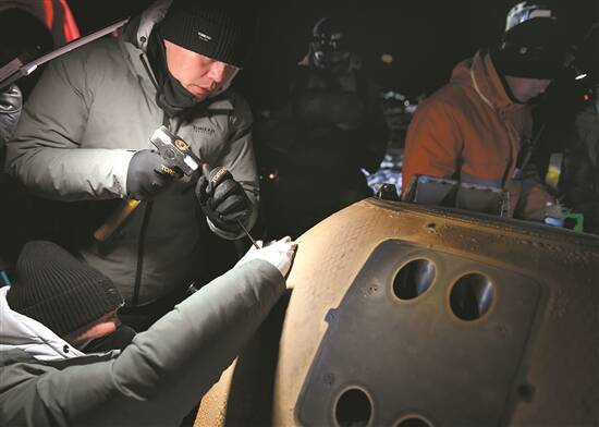 工作人员在嫦五返回器着陆现场作业 新华社发 |