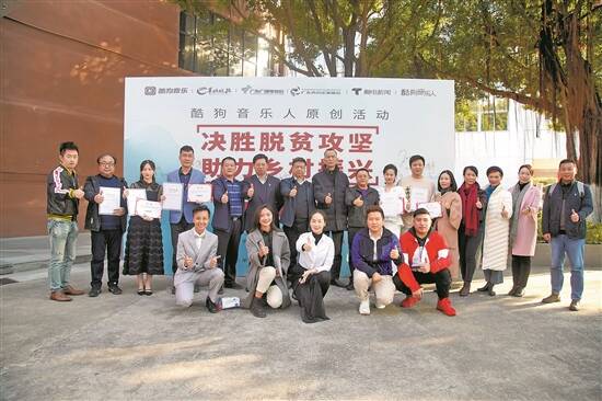 羊城晚报记者 胡广欣 黄翔宇 实习生 余融 12月18日下午,“决胜脱贫攻坚,助力乡村振兴”主题原创歌曲征集活动优胜作品发布会在羊城创意产业园酷狗音乐办公楼举行。广东省农业农村厅(省扶贫办)、广东省广播电视局、羊城晚报报业集团、广东广播电视台、广东省音乐家协会、酷狗音乐、《凤归梧桐》电影出品方的领导嘉宾,以及优胜歌曲主创代表出席本次发布会。 本次原创歌曲征集活动由广东省扶贫开发办公室、广东省广播电视局策划指导,酷狗音乐联合羊城晚报、广东省音乐家协会共同主办。活动现场揭晓了票数最高的五首优胜作品并颁发获奖证书。五首优胜作品分别为:《岭南杜鹃红》《我知道你也想我》《山与山的拥抱》《村里变化大》《有梦想就有力量》。 专家点评 作品胜在接地气 本次“决胜脱贫攻坚,助力乡村振兴”主题原创歌曲征集活动于今年8月28日启动。一个月的征集期中,共收到近千首原创作品报名,总参与人数高达数十万,点赞数超百万。值得一提的是,本次活动是酷狗音乐参与歌曲量最高的原创征集活动之一。初期选拔采用线上用户投票+线下专业评审双向制,酷狗音乐开放平台设置征集专区,用户投票转发增加互动效果,用户投票超过120万票。 这些参赛作品质量颇佳,从多角度表达主题,颇具传唱度,而且融入广东文化特色,展现广东风土人情。经过数月的评选,10强歌曲脱颖而出,进入最后10进5评比阶段。五首优胜作品则完全由大众投票选出:羊城派新闻客户端于10月31日发起为期一周的投票活动,《岭南杜鹃红》以近32万票获得第一位,《我知道你也想我》《山与山的拥抱》《村里变化大》《有梦想就有力量》分别位居第二至第五名。 广东省音乐家协会专职副主席、秘书长,国家一级作曲金旭庚点评本次活动征集的作品。他表示,10首入围作品均具有接地气的鲜明特点,利于传播:“脱贫攻坚是一个大主题,但文艺作品的切入点要小,切忌泛泛而谈。此次征集活动的10强作品都做到以小见大,无论歌词还是音乐语言都非常接地气。”他评价,本次活动第二名《我知道你也想我》把大主题落实到小处,歌词触动观众心弦;另一首获奖作品《山与山的拥抱》讲述了广东佛山与其对口帮扶地区——四川凉山的故事,“这首歌的切入点新颖,让人一听就有画面感”。 广东原创 每到节点必发声 本次歌曲征集活动发掘出一大批优秀的原创音乐作品,通过政府、音乐工作者团体、互联网音乐平台、媒体等多方助力,推动广东原创音乐发展。 酷狗音乐副总裁赵海舟介绍,酷狗音乐近年大力推动原创音乐发展,吸引更多优质音乐人入驻,并提供人才扶持机制,让更多音乐人被听见。他谈到,酷狗针对其平台上活跃度较高的音乐人推出重点扶持计划“星曜计划”,致力于挖掘有潜力的作品和音乐人。同时,酷狗平台搭建的“音乐+直播”“音乐+短视频”扶持生态,也为诸多素人歌手、原创音乐人实现了多样化的曝光和变现渠道。据了解,酷狗音乐开放平台已入驻17万音乐人,累计发布200多万首歌曲,作品进入酷狗TOP500榜单次数超过10万次,音乐人3年收入超5.9亿元。借助本次歌曲征集活动,青年女高音歌唱家、国家二级演员任雯文,青年作曲家熊亮,2015年中国音乐金钟奖广东赛区季军得主廖一璇等优秀音乐人、歌唱家入驻酷狗音乐。一方面丰富了酷狗音乐的内容库,另一方面也让优秀的广东原创音乐冲出家乡、奔向全国。 在2020年这一脱贫攻坚战决胜年,广东文艺工作者创作出一大批优秀的主题创作。本次活动主办方之一——广东省音乐家协会秉承“每逢大事必有歌,每到节点必发声”的优良传统,在2020年组织全省音乐家进行多项脱贫攻坚主题创作,其中就包括反响颇佳的大型原创情景交响组歌《这就是我们》。广东省广播电视局除了策划指导本次歌曲征集活动外,还指导创作了扶贫题材网络电影《凤归梧桐》、网络音频系列节目《边走边看说乡村》等精品项目。
