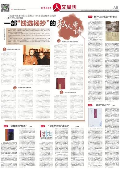 □文/羊城晚报记者 孙磊 为纪念钱锺书先生诞辰110周年,人民文学出版社于11月正式发布《钱锺书选唐诗》,该书以钱锺书先生选定、杨绛先生抄录的唐诗手稿为底本,是近四十年来从未对外公布的重要文献。 《钱锺书选唐诗》共选录308位诗人的1997首(句)作品。其中,白居易以184首作品超过杜甫(选录174首)位列第一。该选本从1983年到1991年历时8年多完成。 杨绛先生在稿子的封面上,原来题写的名称是“《全唐诗》录 杨绛日课”,钱锺书先生又补题了“父选母抄,圆圆留念”八个字,基本道明了这部诗选的性质,是一部偏私人化的选本,充满文学趣味且饱含学人性情,某种程度上也反映了钱锺书先生本人的诗学观念。 更倾心宋诗审美范型 《钱锺书选唐诗》中,白居易以184首作品超过被誉为古代诗歌“集大成”者的杜甫,位列第一,其他入选诗人的诗作数量都是两位数或个位数。盛唐诗人的代表李白,仅入选23首,排在第20位,北京大学中文系教授、博士生导师张剑认为这反映了钱锺书先生本人的诗学观念。 钱锺书在《谈艺录》里谈到“诗分唐宋”,把中国诗歌审美类型分两种,一个是唐诗类型,注重丰神情韵,一个是宋诗类型,注重筋骨思理。钱锺书先生总结的这两个类型非常具有开创意义,他指出“诗分唐宋”非朝代之分,而是就风格分类,是体格性分之殊。唐诗里面也可以有宋诗的类型。 钱锺书先生在《中国诗与中国画》一文中谈到对白居易、杜甫、李白三个人诗歌的概括:李白是词气豪放,杜甫是思力深刻,白居易是议论畅快。张剑表示,思力深刻和议论畅快都是宋诗审美范型,也是宋诗最重要的特点。“钱先生选了思力深刻的杜甫174首,议论畅快的白居易184首,这很明显体现出他内心深处对宋诗审美范型更为倾心。” 北京大学博雅荣休教授、国学院博士生导师葛晓音表示,从明清以来有一场很著名的争论,就是唐宋诗之争。在她看来,唐宋诗之争分三个层次,根据唐诗派的观点,首先是唐诗和宋诗的不同,其次是盛唐和中晚唐诗的不同,最后就是王维和杜甫、韩愈的不同。 “在盛唐派,特别是一些观点比较偏颇的盛唐派看来,杜甫也都归到了中晚唐这一派当中去。几乎整个明代一直到清代的前期,可以说都是笼罩在这样的观点之下。所以,杜甫是开了中晚唐诗,宋诗主要是受了杜甫和中晚唐诗的影响,这个观点一直影响很大,直到清中叶以后,近代宋诗派起来,宋诗派的势力逐渐大起来,才有所转变。”葛晓音认为钱锺书处理初盛唐和中晚唐比例的时候,也有纠正宗唐派倾向的用意,让大家看到中晚唐也有很多好诗。 选诗视角独特重创新 《钱锺书选唐诗》力图展示活泼泼的唐诗的方方面面,所以,它既选了大量以创作闻名的诗人的作品,也选了像唐明皇、宣宗皇帝、则天皇后、江妃、章怀太子等非诗人的作品;既选了思想性强的像杜甫的《新安吏》《石壕吏》和“三别”等诗作,也选了像韩愈的《嘲鼾睡》、曹著的《与客谜》这类趣味性作品。 葛晓音指出,历来选本有两大类,一类为官方所用,比方说《唐人选唐诗》里面有《御览诗》,那是选给皇帝看的;一类是私人选本,特别宋元明清以来居多,这类选本体现选家的爱好和眼光。《钱锺书选唐诗》明显是后一种。 “钱锺书选诗的目的,是给杨绛先生和钱瑗女士读的。这样的选本,从上世纪50年代以来非常罕见,因为它很私人化。”葛晓音指出,从数量上来看,《钱锺书选唐诗》的大体比例是略初盛而详中晚。中小作家特别多,很多选本不选的诗人都选了,而且有的不知名的诗人选得还不少。“从杜甫开始,中晚唐诗人普遍选诗比较多,应该说,所选的大多数都是为大家公认的好诗,尤其是杜甫,我觉得选的诗非常好。” 在葛晓音看来,钱锺书先生选唐诗还有两个标准,一个是作品是否有创新,另一个是看重人之常情的表现。“钱先生选的有些作品非常新奇有趣,像《梁广画花歌》,他是写一个仙女爱上一个画家,他就把她写得完全没有一点仙气,写得好像人间女子追求人间相公一样。” 人民文学出版社副总编周绚隆也表示钱锺书先生选诗注重创新,“除了具备情韵和思理以外,对在诗歌当中抒写了前人所没有表达过的经验,刻画体悟生动传神,或在诗歌史上承上启下、开风气之先的作品,他都给予了关注。” 至于人之常情的表达,唐代诗人善于提炼具有普遍性的人情,比如乡情、亲情、节物之感等等。表现人生的共同感受,这是唐诗之所以到现在还能够为大家所传诵的重要原因,也是唐诗最突出的特点。在葛晓音看来,以往这样的佳作入选的大多是盛唐的诗歌,中晚唐以来一般很少选这类诗,但是钱锺书先生在中晚唐诗人中发掘了大量这样的好诗,比如说陈标的《蜀葵》,章孝标的《日者》、崔郊的《赠去婢》,裴夷直的《遣意》,等等。 在周绚隆看来,《钱锺书选唐诗》虽然是钱、杨夫妇自己选、自己读,未经仔细打磨的唐诗选本初稿,但它充分体现了钱锺书先生选唐诗的主观立场和独特视角,是相关领域研究的重要文献。同时,近2000首作品的体量,比较全面地呈现了唐代诗歌的艺术特征和风格状貌,也为大众读者研读欣赏唐诗这座中国文学史上的高峰,提供了更完备的选本。 钱杨夫妇诗书生活的缩影 《钱锺书选唐诗》的原始手稿由杨绛先生题名为“《全唐诗》录 杨绛日课”。似乎可以看见,对于杨绛先生而言,这次唐诗选录也是她和