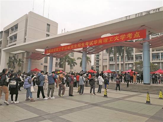 羊城晚报讯 记者孙唯、陈亮,实习生梁铱霖、夏嘉欣报道:26日,为期3天的2021年全国硕士研究生招生考试(初试)正式拉开帷幕。据教育部统计,今年全国考研人数达到377万,其中广东考生总人数为20.2万。当日,记者来到华南师范大学、华南理工大学等考点,现场直击研考首日情况。 秩序良好 据省教育考试院统计,本次考试广东考生总人数为20.2万,比上年增加2.7万。全省共设考点129个、考场近7000间(其中启用隔离考场81间),调派监考员、工作人员2.5万人。 今年全省加强疫情防控,采取面向全体考生点对点发送短信、各考点设置卫生副主考,加强考试环境综合治理和监督检查、入场检查、社会监督等。 省教育考试院还为5名特殊考生提供合理便利服务,特别是专门为1名盲人考生译制盲人卷,确保每一位考生不因特殊情况而失去研考机会。“从首日考试情况看,全省各地组考和防疫工作规范严密,服务到位,考场秩序良好,考试平稳顺利。”省教育考试院相关负责人表示。 严格防疫 26日早晨,在华南师范大学石牌校区,记者见到,考生们佩戴口罩,手持准考证、身份证和粤康码,沿着体温检测通道分散有序进入考点。记者了解到,有发热、咳嗽等症状的考生,会由专人带领进入专设的备用隔离考场考试,考试结束后从专用防疫特殊通道离开,实现考生分流管理。 疫情防控期间,华师实行封闭式管理,考生仅能从石牌校区正门、西门和大学城校区正门、北门、东门、南门进入,不允许校外车辆及考试陪同人员进入校园。同时,华师考点开放校内用餐,考生如需进出校园均要再次测温、查验相关材料。考试结束后,华师考点将由专人进行考场消毒。 华南理工大学成立疫情防控组,在考试前一天对考试教学楼进行了充分消毒,并为考生和考试工作人员准备了充足的消毒和防护物资。本次考试华工设置了3个考试围蔽区域及各1个具备防疫条件的临时隔离观察点,并在各围蔽区域入口设置了体温检测通道。 暖心鼓劲 近年来,考研热度不减。记者了解到,今年报考华师研究生的人数共有26948人,比去年增加了1345人。 记者发现,为了能够进入心仪的高校,不少考生进考场前还捧着复习资料和书籍,抓住最后一点时间复习。 考前,岭南师范学院还召开动员会,为考研学子加油鼓劲。“考研路上,从来不是一个人在奋斗,同学们身后有强大的后盾与强劲的支持。”该校文学与传媒学院党委副书记梁碧斐为考研学子们派发了考研用品并送上亲切祝福。物理科学与技术学院则准备了装有橙子和棒棒糖的“考研礼包”,寓意学子们都能“橙”心“橙”意、“橙”功上岸,取得“棒棒”的成绩。