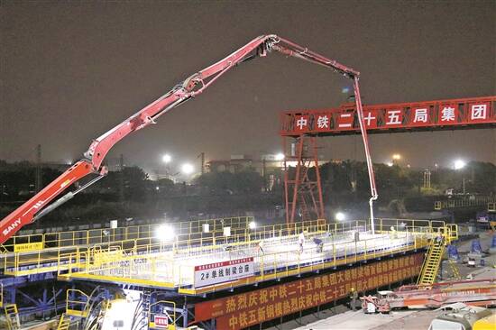 羊城晚报讯 记者李志文,通讯员邓联旭、余冰峰、李潇娜摄影报道:12月26日,经过6个小时的不间断浇筑,粤港澳大湾区重点建设项目——广州白云站枢纽全线首榀(量词,通常用于建筑学)箱梁在中铁二十五局大朗制梁场成功浇筑,标志着工程建设进入新阶段。 广州白云站作为广州市普铁客运担当,总投资达数百亿,是广州市首个按现代综合交通枢纽规划建设理念打造的特大型枢纽,项目建设主要内容为新建广州白云站、配套建设大朗客车整备所等相关设施及联络线路工程,工程预计2023年完成建设。 箱梁,是桥梁工程中的一种梁,内部为空心状,上部两侧有翼缘,类似箱子,因而得名。此次预制首榀箱梁的大朗制梁场,位于广州市白云区,承担着白云站枢纽全线,兼顾广湛铁路、广清城际铁路部分线路551榀箱梁的预制任务。“新鲜出炉”的首榀箱梁为单线梁,长32.6米,宽7.1米,高2.542米,重约650余吨,设计混凝土浇筑数量为253立方米。 为确保首榀箱梁顺利完成浇筑,中铁二十五局依托省级劳模和工匠人才创新工作室,开展工程材料试验科研技术攻关,同时对现场施工人员进行全面的技术和安全培训交底,合理组织机械设备和各类物资材料供应,严格现场技术监控和安全质量管理,保障箱梁浇筑过程连续、规范。 中铁二十五局项目总工程师蒋黎明介绍:“自12月以来,我们相继完成了京广高铁联络线下行1号、上行线1号特大桥这两座属于白云站配套工程桥梁的首墩浇筑任务,全线桥梁工程施工全面铺开,为2021年9月架梁施工的开展创造了良好条件。” 据悉,作为构建“五主三辅”广州铁路客运系统能力建设的关键性工程,新建广州白云站将承接办理既有广州站全部普速车,兼顾部分通过高铁和珠三角城际客流,规划引入地铁、长途汽车、公交枢纽站,成为集各种方式一体化换乘的综合交通枢纽,将极大地提升城市交通运营能力,改善市民出行方式,为广州城市发展发挥积极效能。