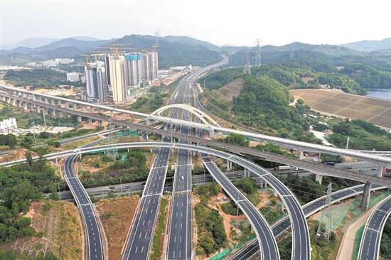 文/图 羊城晚报记者 李天军 29日下午6点,深圳外环高速公路一期工程正式通车,长51公里。项目共分三期建设,完成建设之后,这条纵贯东西的交通大动脉将串联深圳6个辖区、连通深莞惠。 深圳新“东西大动脉” 深圳外环高速公路是广东省“十二纵八横两环十六射”高速公路骨架网的一条加密线,也是深圳市“十横十三纵”干线道路网规划的重要一“横”。 项目由深圳段和东莞段组成,西起于广深沿江高速公路,向东经宝安区、光明区、龙华区、东莞市、龙岗区、坪山区、大鹏新区,终点接盐坝高速公路,全长约93km,其中深圳段全线采用双向6车道高速公路标准建设,设计时速为80到100公里,全长76km,项目分三期建设。 当天开通的一期工程起点接广深沿江高速公路,往东经宝安、光明、龙华、龙岗,终点接二期工程龙岗段起点,路线长51公里。二期工程起点接一期工程龙岗段终点(惠盐高速),往南经坪地、坑梓,终点接丹梓大道并在锦绣东路设置临时收费站与聚龙路对接,路线长约9.35km。目前,二期工程正在加紧建设中,预计将于2022年建成。三期工程起点接二期工程终点锦绣东路,终点接盐坝高速,路线长约16公里。 沿途布设多功能智能杆 深圳外环高速一期是广东省智慧高速省级科技示范路,沿途布设了多功能智能杆,伴随着外环高速一期工程通车,外环高速将成为全国首条以多功能智能杆为载体,实现5G网络全覆盖的新建通车高速公路。 同时,这些多功能智能杆可以搭载智慧照明、交通监控、应急广播、气象监测等智能硬件,可以实现智能路网监测、智慧应急指挥、实时交通在线仿真、无人驾驶辅助等功能,为打造5G全息动态数字新一代智慧公路实现良好开篇。 数说深外环高速 ●国内公路行业首个“PPP”模式投资项目; ●全长93公里,是目前深圳线路里程最长的高快速路项目; ●迄今为止深圳工程规模最大的项目,使用混凝土280万立方米,相当于3个水立方游泳馆体积,钢筋85万吨,相当于8个鸟巢体育馆用钢量,全线桥隧比达59%。