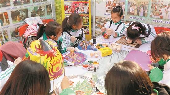 “我很幸运能代表学校来这里展示自己的兴趣爱好——漆画创作,我们在美术课上会学习漆画,没想到它竟然有7000多年的历史。我最喜欢用蛋壳来贴一幅画。”广州市越秀区东风东路小学三年级学生邱志赞在学生艺术实践工作坊现场专心致志地制作一个用蛋壳装饰的斗篷。她的指导老师吕惠卿介绍,东风东路小学从2006年就开始在美术课上教孩子们画漆画,“漆画的创作很考验学生的耐心,材料大都取材于生活,基本是废旧物品再利用,每次创作完,孩子们看到自己的心灵手巧可以变废为宝,都由衷地喜悦。”