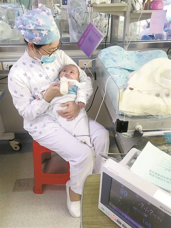 文/羊城晚报记者 张华 通讯员 伍晓丹 韩羽柔 图/医院提供 565克有多重?可能是两个大苹果或一瓶矿泉水,也还可能是一个新生命。25周零4天出生的小欣欣就是这样的超早产儿。那时,保温箱里的她瘦小又脆弱,经过南方医科大学珠江医院新生儿科医护团队几个月的精心呵护,小欣欣顽强地闯过了一道道难关,伴随着即将敲响的2021年新年钟声,小欣欣也迎来了属于她的新生。 去年7月3日,由于母亲较严重的妊娠期高血压,仅25周零4天的小欣欣提前来到了这个世界。因胎龄过小,刚出生的她就出现了呼吸困难、低氧血症等,在场早已提前做好准备的新生儿医护团队立即进行抢救。待情况稍稳定,她被立即转入新生儿科重症监护病房。 当时的小欣欣体重仅565克,身长29厘米,比1个成年人的巴掌大不了多少。为了全力救助这位早到的弱小天使,新生儿科迅速组建以科室主任王斌、护士长钟春霞为首的抢救与护理小组。彼时,小欣欣的器官远未发育成熟,缺乏来自母体的抗体,因此,皮肤屏障功能以及对外界的抵抗力都比较差,出生不久就合并了严重感染,右下肢瘀斑越来越重,血小板甚至直线下降至个位数(正常人约100-300个单位)。 “血小板太低,最大的风险就是大出血。对于像小欣欣这样的超早产儿,一旦大出血,随时都可能出现生命危险。”王斌表示。面对危急情况,抢救小组迅速调整治疗方案。功夫不负有心人!小欣欣的感染逐渐得到控制,血小板稳步上升并维持在正常范围。 在医护人员的精心照护下,小欣欣顺利闯过了循环、感染、营养、神经损伤等一个又一个难关,但是呼吸问题始终难以改善,呼吸机很难撤下来,需要反复的有创通气和无创通气才能维持生命体征的稳定。 抢救小组持续调整治疗方案,把治疗重心放在营养、肺发育的改善等方面,新生儿科康复治疗师定期辅助小欣欣进行肺功能康复。 经过耐心细致的治疗,小欣欣终于在去年11月16日完全脱离机器,恢复了自主呼吸。 去年12月28日,各项指标良好的小欣欣终于健康出院了,出生时仅565克的她,体重已经长到4.7千克。“此前还担心她要独自在医院跨年,这回可以安心带着宝宝回家迎新年了。”