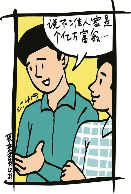 插图 采采 大奖开出快一个月了,一等奖得主还没来兑奖。按照彩票中心的规则,自开奖日起,兑奖有效期限为60个自然日,逾期作自动弃奖处理。 负责兑奖的工作人员小李真替那位得奖者着急,要知道,这可是几百万的大奖。往常,这种大奖得主不是带着亲朋好友热热闹闹地来,就是穿着低调小心翼翼地跑来中心领奖,生怕来晚了奖项给别人抢走了似的。 “或许这次的得奖者是个马大哈,估计现在还没有发现自己中奖呢。” “有可能,记得曾有个大爷就是忘了兑奖,过了时间再来,哭哭啼啼都没有用。” “还有人将彩票放到口袋里,洗衣机一洗,彩票全烂了,识别不了想兑奖都兑奖不了。” “说不准,人家是个亿万富翁呢?根本不在乎这点小钱,全当做慈善公益。” 同事们七嘴八舌地议论起来,给出各种各样的假设,发表各自的看法,这也越发让小李对得奖者的身份感到好奇。 不知不觉,又过了十几天。这天下午临近下班。忽然,小李看到大门外走进来一位一身迷彩服、脚上穿着旧军鞋的男子,脸膛黝黑,走近来,小李还闻到他身上散发出一股汗水的酸臭味,细瞧之下发现衣服上还沾着点点的黄泥痕迹。 (黄超鹏)