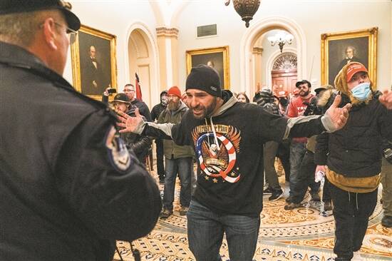 示威者在美国华盛顿国会大厦内与警察对峙 新华社发 |