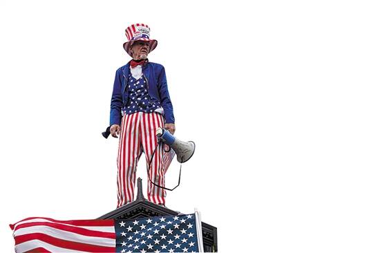 一名身着美国国旗元素服饰的支持者参加示威游行 新华社发 |