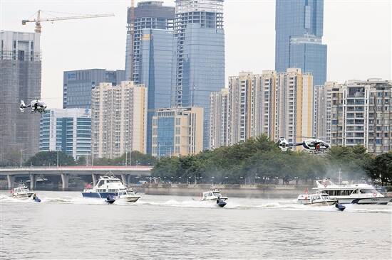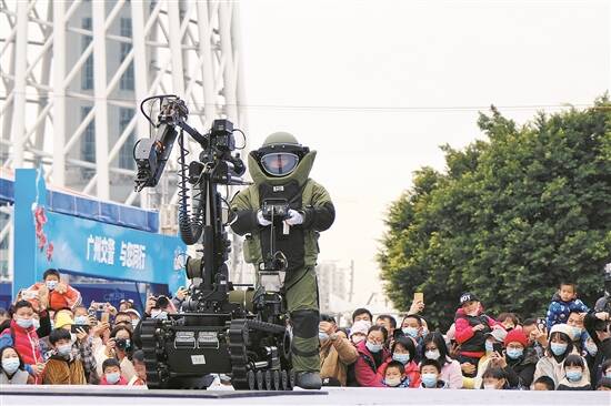 羊城晚报记者 付怡 实习生 许张超 1月10日,为庆祝首个中国人民警察节暨广州110报警服务台成立35周年纪念日,广州市公安局在海心沙亚运公园举行警营开放日活动。广州公安历史回顾主题展览、2个警用装备主题展区、18个专业警种的警务咨询和互动体验区,以及轮番上演的警务技能展示和水空综合演练活动,通过“尖端装备+亲民体验”的科技化、多元化展现方式,吸引了数千市民来到现场参观“打卡”。在“广州公安”融媒体平台,同步设立的“广州110网上警营开放日”在线直播吸引了超过2300余万人次观看。 “哇,直升机来了!”上午11时15分,伴随着孩子们的欢呼声,两架广州公安警航支队的警用直升机飞临海心沙岛南边珠江水域,悬停在距江面约30米左右的高度。此时,水警的数艘船艇也同步到达该水域,只见两名全副武装的特警出现在机舱侧面,迅速抛出索降绳。特警落船的一瞬间,现场观众爆发阵阵掌声。 这是广州公安水空综合演练的一幕,模拟珠江上一艘船艇出现被劫持的突发状况,广州特警索降安全解救人质的场景。飞机、船艇、特警三方密切的配合,是广州公安铁军高超、精湛警务技能的缩影。在结束演练观摩后,市民群众还欣赏到了广州交警精彩的地面警用摩托车演练、警犬搜索等表演。 当天,在海心沙星光大道上,广州警方搭建了长达110米的展览长廊,以图文展板、实物展示、声光电特效、多媒体互动等方式,展现了广州公安的百年变革。从探索救亡图存时期(1924年)的红色保卫工作,到1986年1月10日在全国首先设立110报警电话,再到新时代智慧新警务建设成效。广州公安百年历史的精彩瞬间被凝固成了长廊画面,吸引了众多前来参观的市民。 此外,此次广州警方尽秀“看家本领”,向市民准备了广州公安最尖端的20件重型装备和81件小型装备展示。有别于以往的单向式体验,在警用武器类、警用无人机类、智能防控类、搜排爆类、防核生化类、抢险救援类、交通管理类、食药环侦类8大主题式展示场景中,参观市民获得了不同于以往的沉浸式体验。从单警的特警单兵作战单元到最先进的无人机自动飞行工作站,从RMI-10排爆机器人到水下无人驾驶探测艇,广州公安把上能飞天、下能入水的先进警用装备逐一呈现。 进入海心沙广场,参观市民则迎来户政支队、审管处、出入境支队、经侦支队等18个警种联袂打造的警务咨询和互动区。从110接处警、高科技家居安防,到网络新型犯罪防范、毒品检测分析实验室,参观市民在现场警务工作人员的指引下,零距离咨询和体验广州公安在便民服务和治安管理方面的质量和创新。