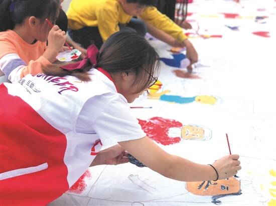 朱慧伶与孩子们参加集体绘画主题活动 |